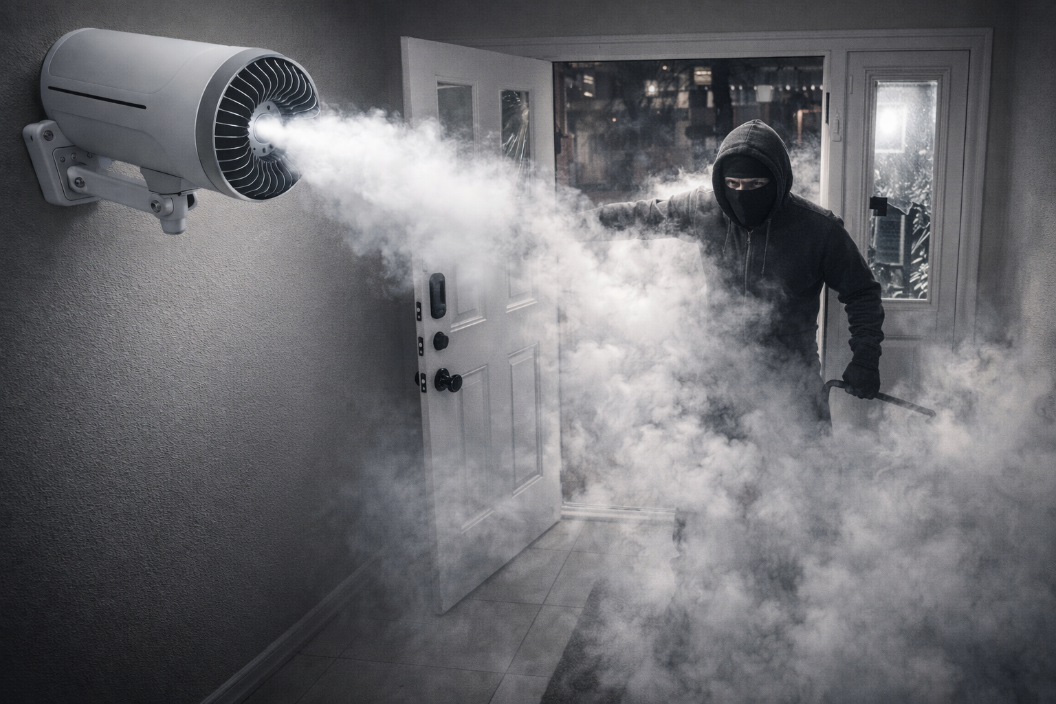 Iron Fog blinds intruders with a dense, cold fog that forces them to retreat in seconds — not minutes.